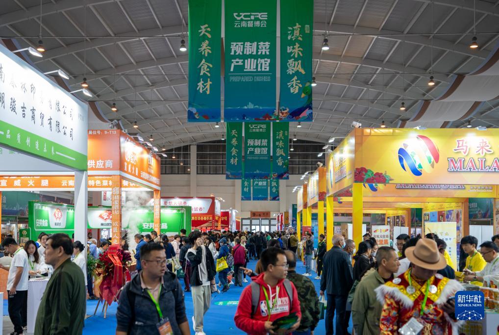 10月13日,參觀(guān)者在云南國際餐飲美食暨預制菜產(chǎn)業(yè)博覽會(huì )上參觀(guān)。