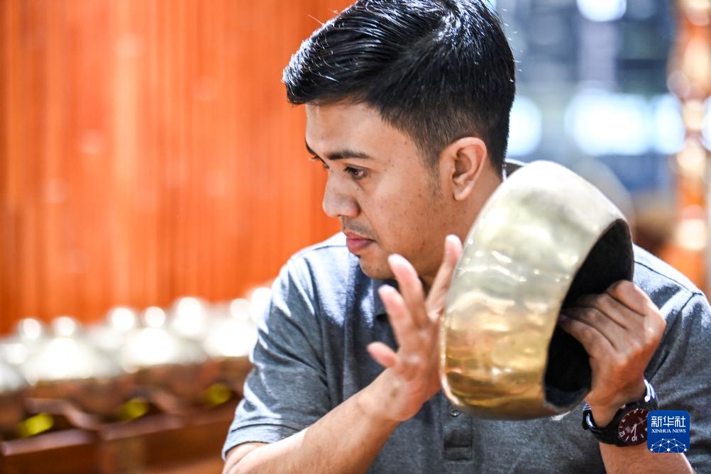 今年36歲的仁迪來(lái)自印尼萬(wàn)隆,2015年,他來(lái)到廣西留學(xué),攻讀碩士研究生。2018年畢業(yè)后,他成為廣西藝術(shù)學(xué)院專(zhuān)門(mén)教授甘美蘭課程的外籍教師,同時(shí)兼任該校甘美蘭樂(lè )團的首席。