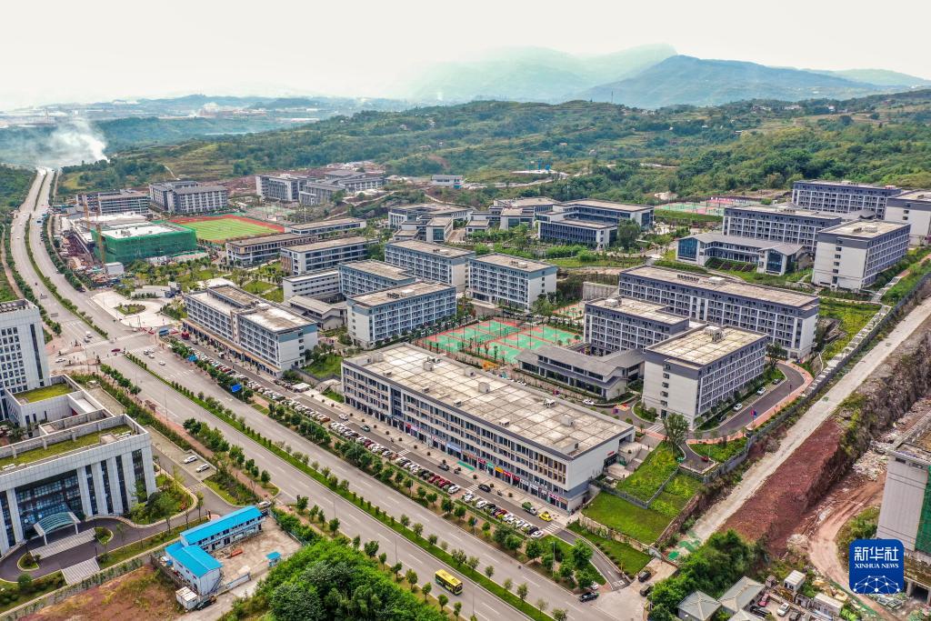 這是10月11日拍攝的重慶移通學(xué)院綦江校區(無(wú)人機照片)。重慶綦江區近年來(lái)著(zhù)力實(shí)施“高校入綦”行動(dòng),積極招引國內外多所高校來(lái)辦學(xué)?!案咝H媵搿睅?lái)的數萬(wàn)名高校師生給這座城市帶來(lái)青春活力,解決老工業(yè)區創(chuàng )新創(chuàng )業(yè)人才不足的問(wèn)題。
