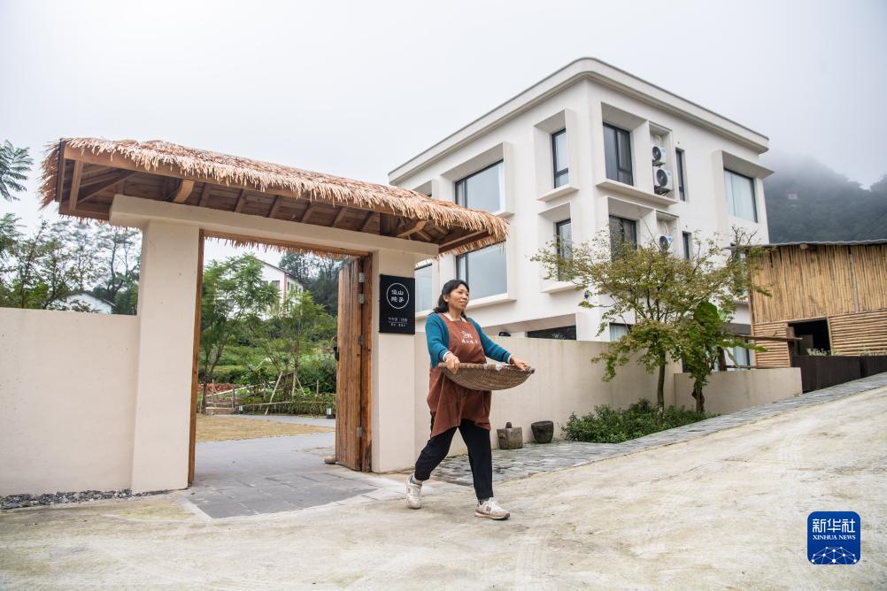 10月12日,在位于重慶市綦江區的三角鎮紅巖村,村民在整理收拾自家的“瀛山院子”民宿。重慶綦江區近年來(lái)大力發(fā)展山地特色高效農業(yè)的同時(shí),創(chuàng )新探索“直播+”模式,通過(guò)“鄉村振興壩壩直播間”,村干部、村民當起主播,推介民宿、土貨等,讓不少城里人慕名而來(lái)。