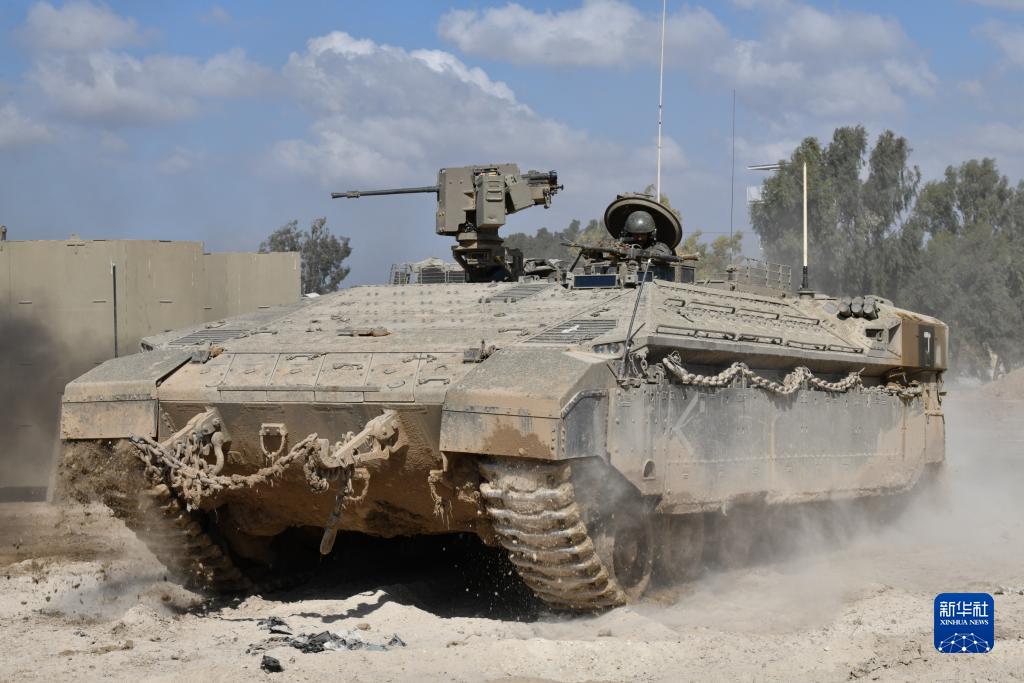 這是10月13日在加沙邊境以色列一側拍攝的集結的以軍裝甲車(chē)。