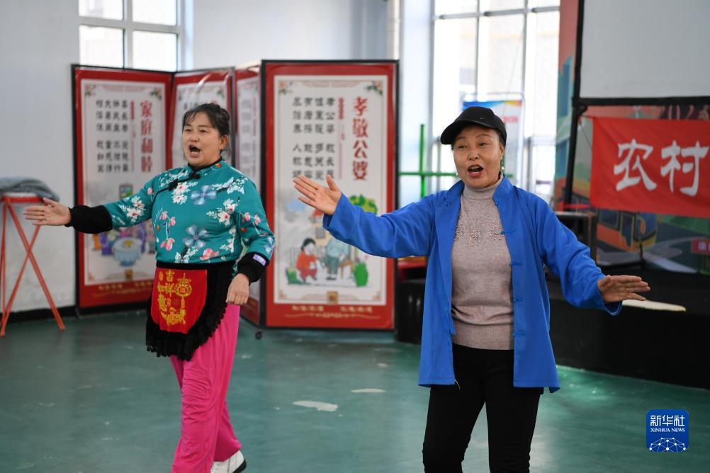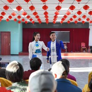 10月13日,河北省康??h怡安康城社區居民在排練康保二人臺曲目。