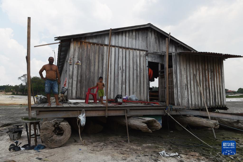 10月10日,在巴西亞馬孫州內格羅河支流塔魯曼河河畔,居民站在自家船屋門(mén)前。