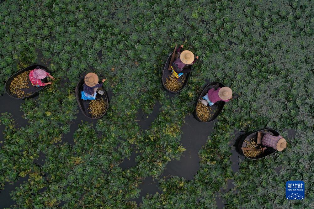 近日,浙江省湖州市南潯區和孚鎮多個(gè)鄉村種植的菱角進(jìn)入收獲季。村民劃著(zhù)菱桶在水面采菱,展現一幅江南水鄉獨有的豐收圖景。