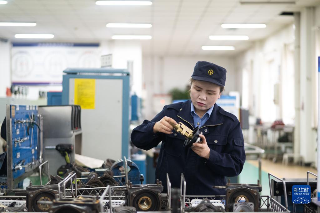 10月12日,在中國鐵路青藏集團有限公司西寧東車(chē)輛段制動(dòng)班組,馬婷檢查120閥主閥配件。