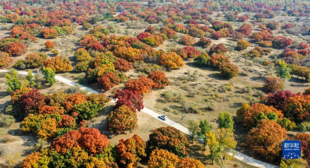 這是10月14日拍攝的烏旦塔拉五角楓森林公園美景(無(wú)人機照片)。