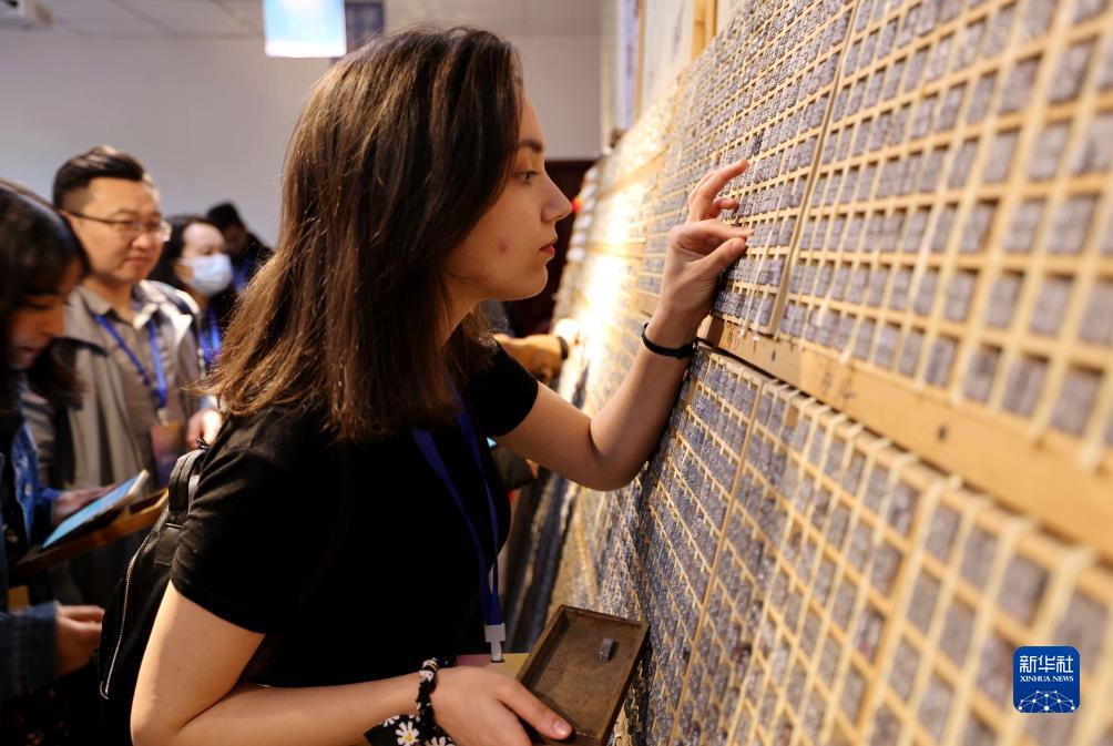 10月14日,在臨沂市沂南縣銅井鎮竹泉村,外國留學(xué)生在體驗活字印刷。