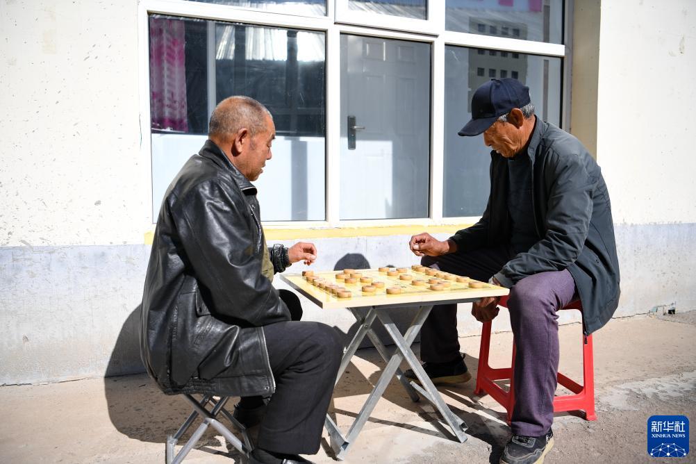 10月14日,居住在河北省康??h土城子鎮互助幸福院的老人們在院子里下象棋。