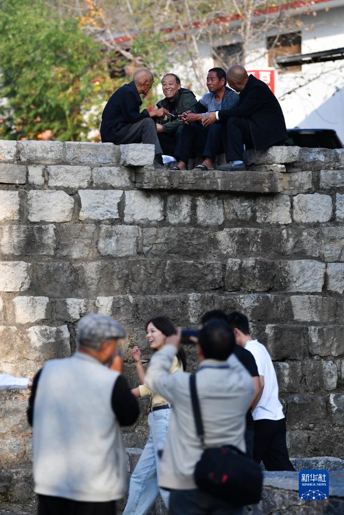 10月14日,游客(下)在大南坡村參觀(guān)。