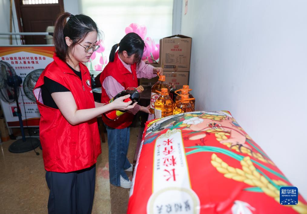 10月15日,在杭州市富陽(yáng)區里山鎮民強村老年食堂,黨員志愿者清點(diǎn)鄉賢捐贈的物品。