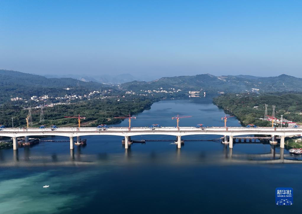 這是合龍后的湘桂鐵路柳江雙線(xiàn)特大橋(無(wú)人機照片,10月15日攝)。