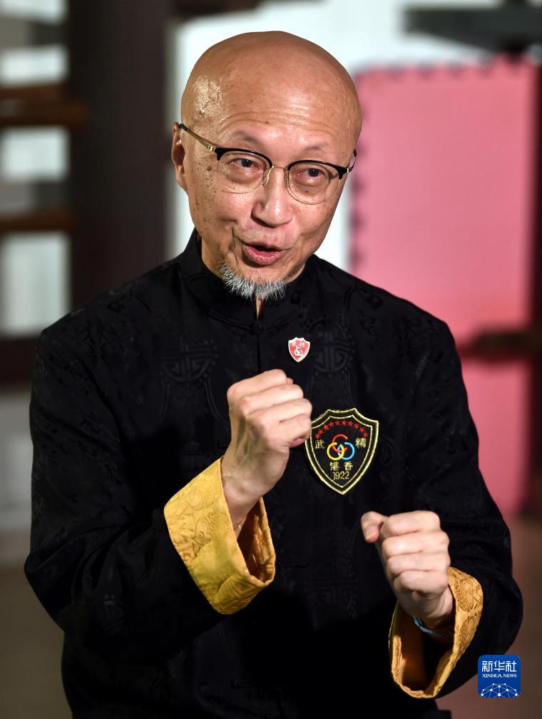 香港精武體育會(huì )主席柯俊龍接受采訪(fǎng)(8月18日攝)。