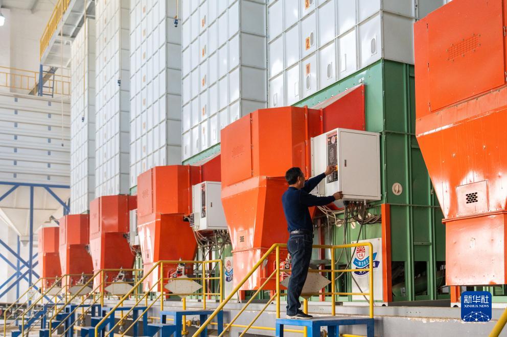 10月15日,在南縣南洲橋國家糧食儲備中心,工作人員在操作烘糧設備。