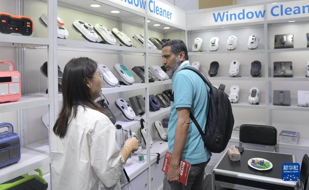 10月15日,巴基斯坦客商在廣交會(huì )上參觀(guān)、選購玻璃清洗設備。