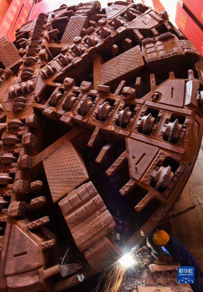 10月16日,施工人員為出洞的“開(kāi)路先鋒2號”盾構機進(jìn)行焊接作業(yè)。