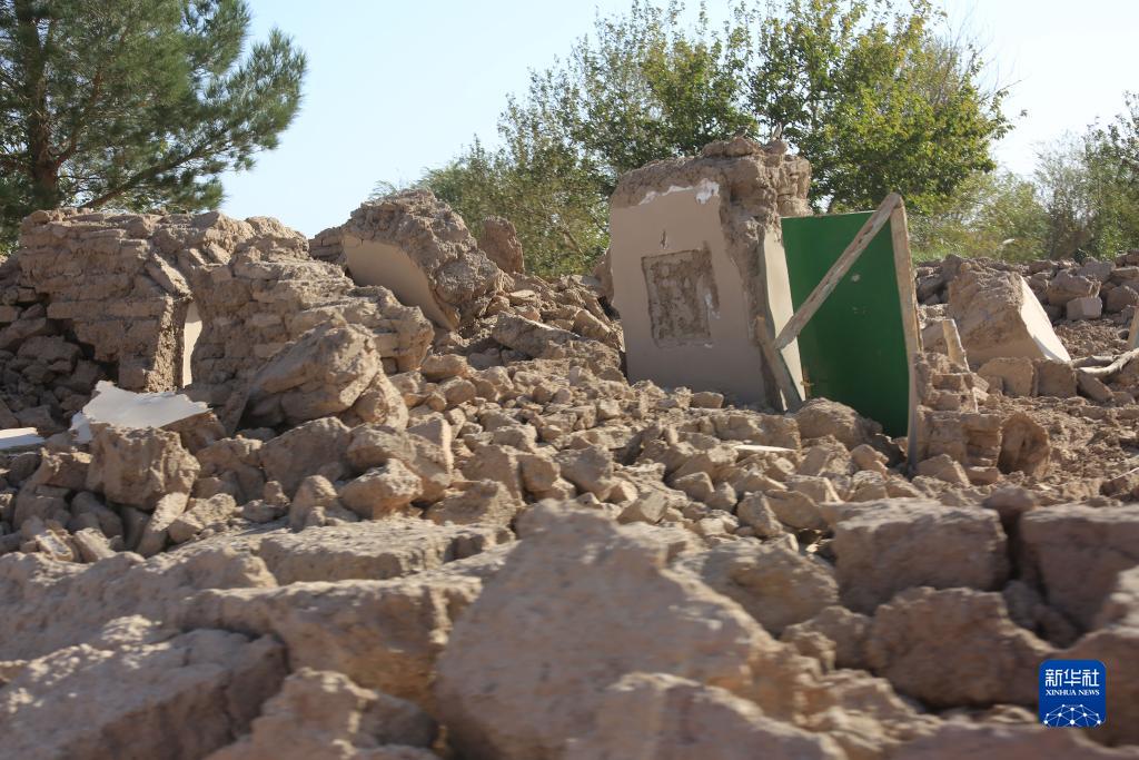 這是10月16日在阿富汗西部赫拉特省拍攝的地震中倒塌的民居。