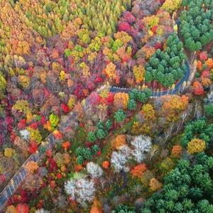 這是10月16日在遼寧省本溪滿(mǎn)族自治縣老邊溝景區拍攝的楓葉林(無(wú)人機照片)。