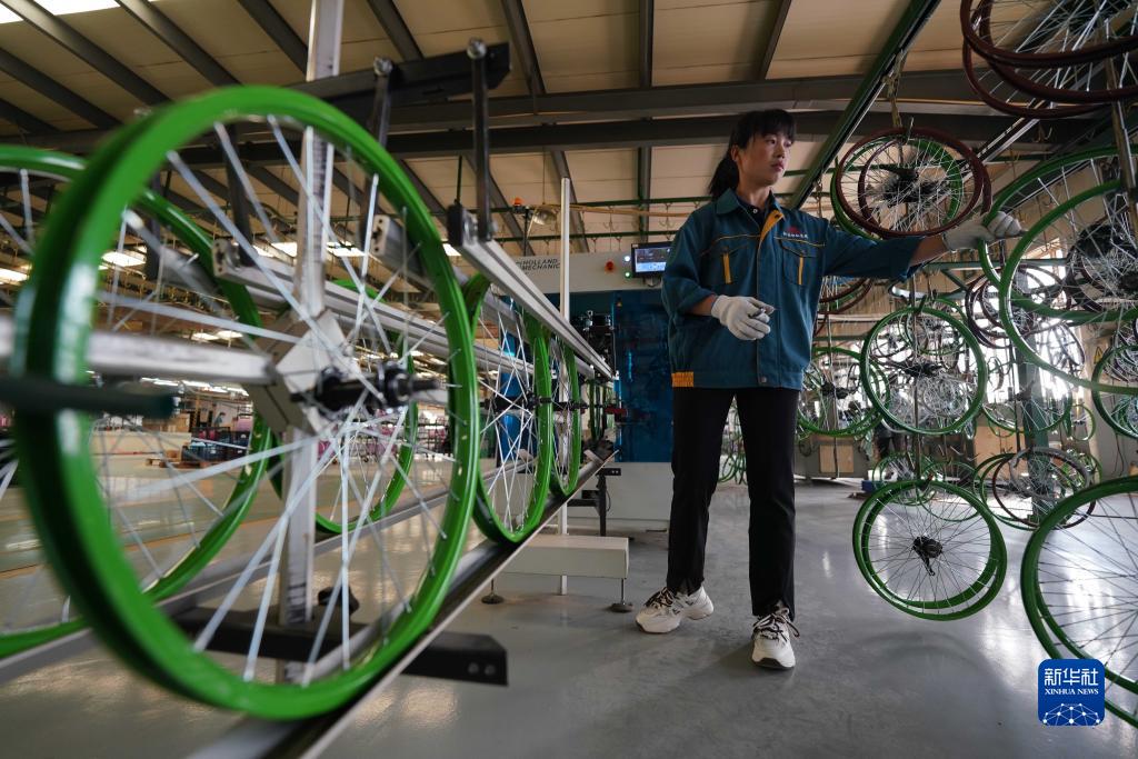 10月16日,平鄉縣一家童車(chē)生產(chǎn)企業(yè)的工人在童車(chē)車(chē)圈生產(chǎn)線(xiàn)上工作。