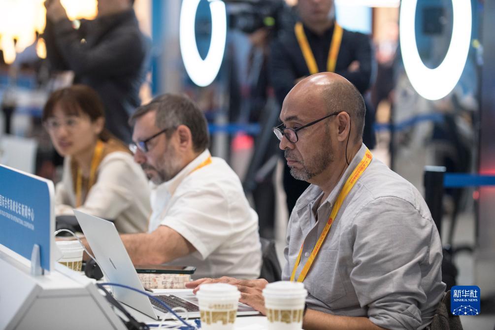 10月17日,記者在“一帶一路”國際合作高峰論壇新聞中心工作。