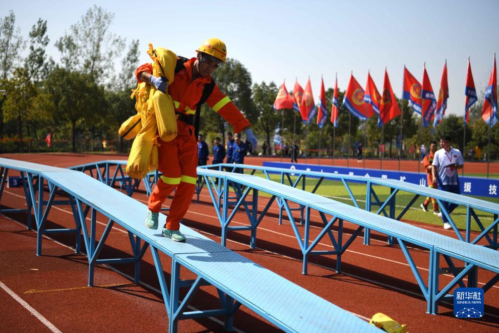 10月17日,參賽隊員在綜合技能項目中比拼。