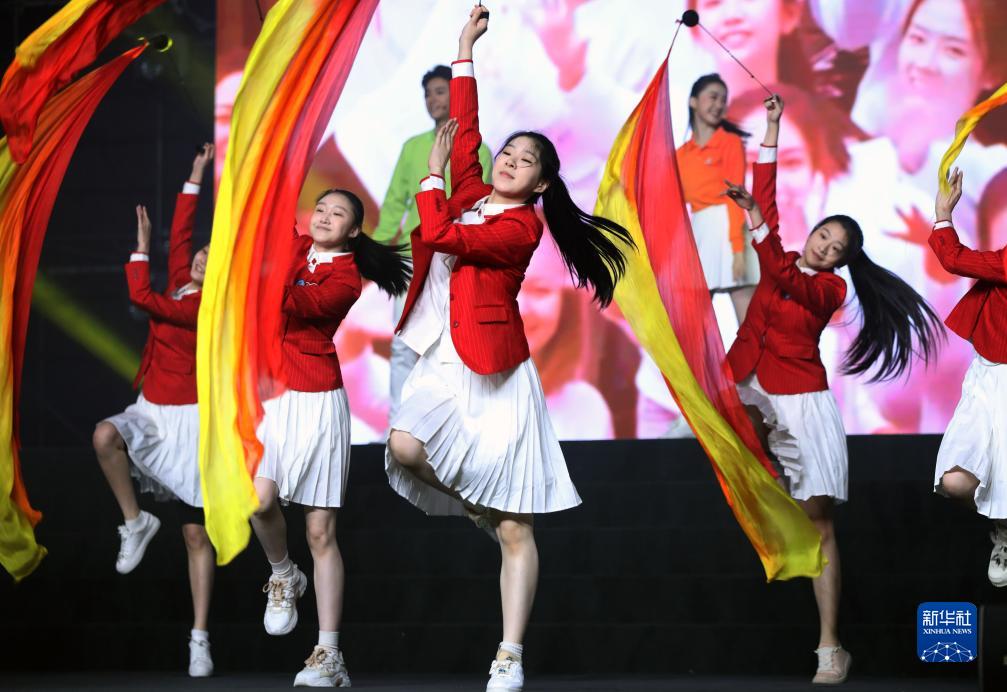 10月17日,志愿者在上崗宣誓儀式上表演。