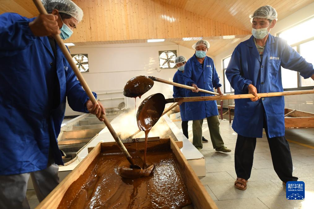 10月17日,豐江周村村民在共富工坊內熬制紅糖。