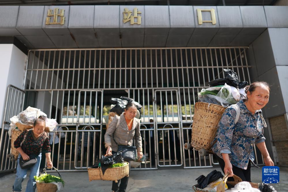 10月17日,5630次列車(chē)到達桐梓站后,村民攜帶農產(chǎn)品下車(chē)。