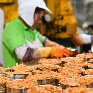10月16日,重慶市涪陵榨菜集團股份有限公司工作人員在智能化生產(chǎn)車(chē)間作業(yè)。