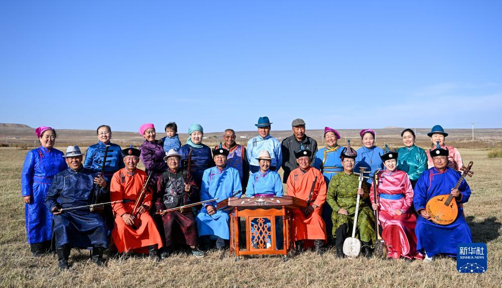 牧忙喂牛羊,閑時(shí)撫琴瑟。秋忙之余,道爾吉與父親明安寶會(huì )參加當地一項特色文藝活動(dòng)——“乃日”?!澳巳铡笨勺g為“禮樂(lè )”“娛樂(lè )”“聚會(huì )”,起源于元代,是一種以樂(lè )器歌舞為主的綜合性民間表演藝術(shù),被列入內蒙古自治區級非物質(zhì)文化遺產(chǎn)名錄。