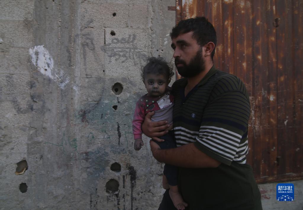 10月17日,在加沙地帶南部城市拉法,一名男子抱著(zhù)受傷的孩子。