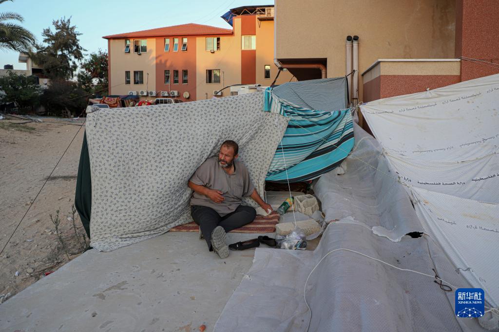 10月17日,在加沙地帶南部城市汗尤尼斯,一名男子在醫院避難所內休息。