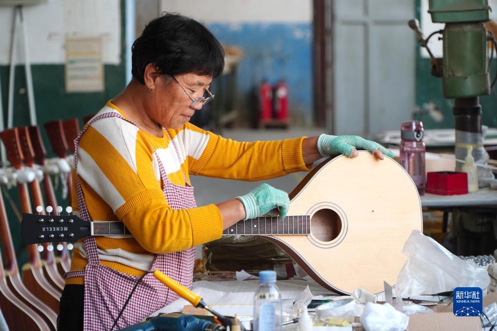 山東省昌樂(lè )縣鄌郚鎮是一個(gè)因樂(lè )器生產(chǎn)而聞名的特色產(chǎn)業(yè)小鎮,該鎮可生產(chǎn)電吉他、電貝司、尤克里里、班卓、曼陀鈴等8大系列近400個(gè)花色品種的樂(lè )器產(chǎn)品。