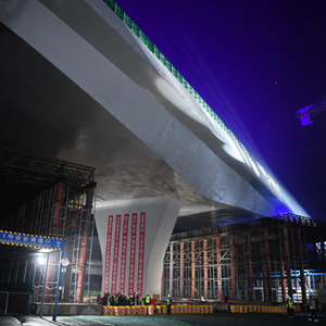 10月18日凌晨,由中國中鐵電氣化局集團有限公司承建的石家莊市中華北大街上跨西環(huán)線(xiàn)鐵路T型剛構橋成功轉體。據介紹,該橋重達21000多噸,施工單位采用精準控制手段,在規定的時(shí)間內完成轉體,最大程度減小對鐵路運營(yíng)的影響。