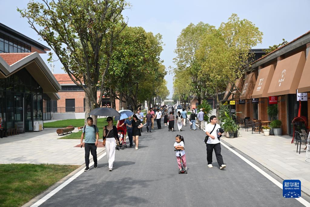 9月27日,游客在合肥駱崗公園內的園博小鎮參觀(guān),該區域由原合肥駱崗機場(chǎng)辦公樓、宿舍區等改造而成。