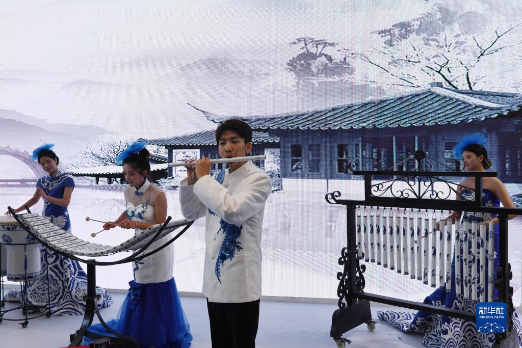 10月18日,演員在瓷博會(huì )現場(chǎng)演奏陶瓷樂(lè )器。