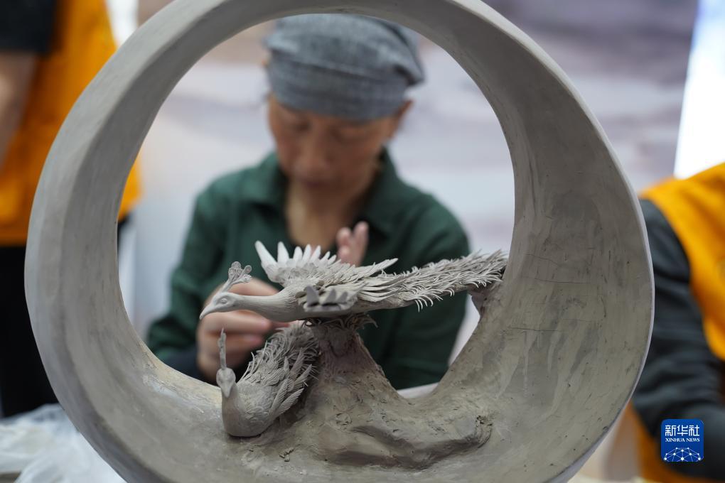 10月18日,在瓷博會(huì )瓷都工匠技藝展示館,一名“瓷都工匠”在展示捏雕技藝。