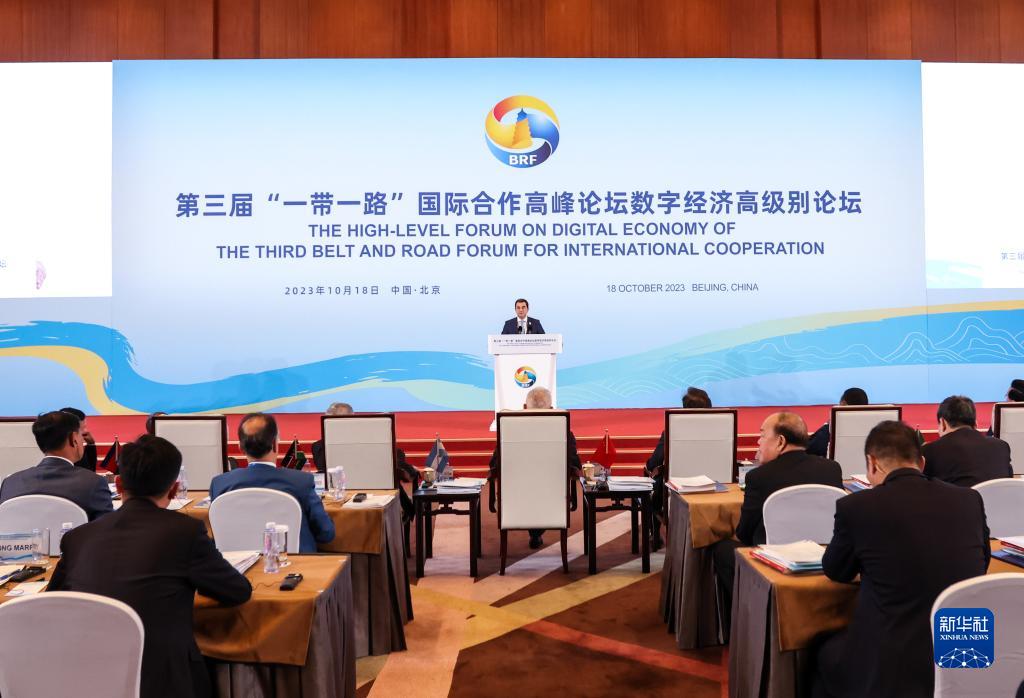 10月18日,第三屆“一帶一路”國際合作高峰論壇在北京舉辦高級別論壇,嘉賓圍繞互聯(lián)互通、綠色發(fā)展、數字經(jīng)濟主題進(jìn)行深入交流。這是數字經(jīng)濟高級別論壇現場(chǎng)。