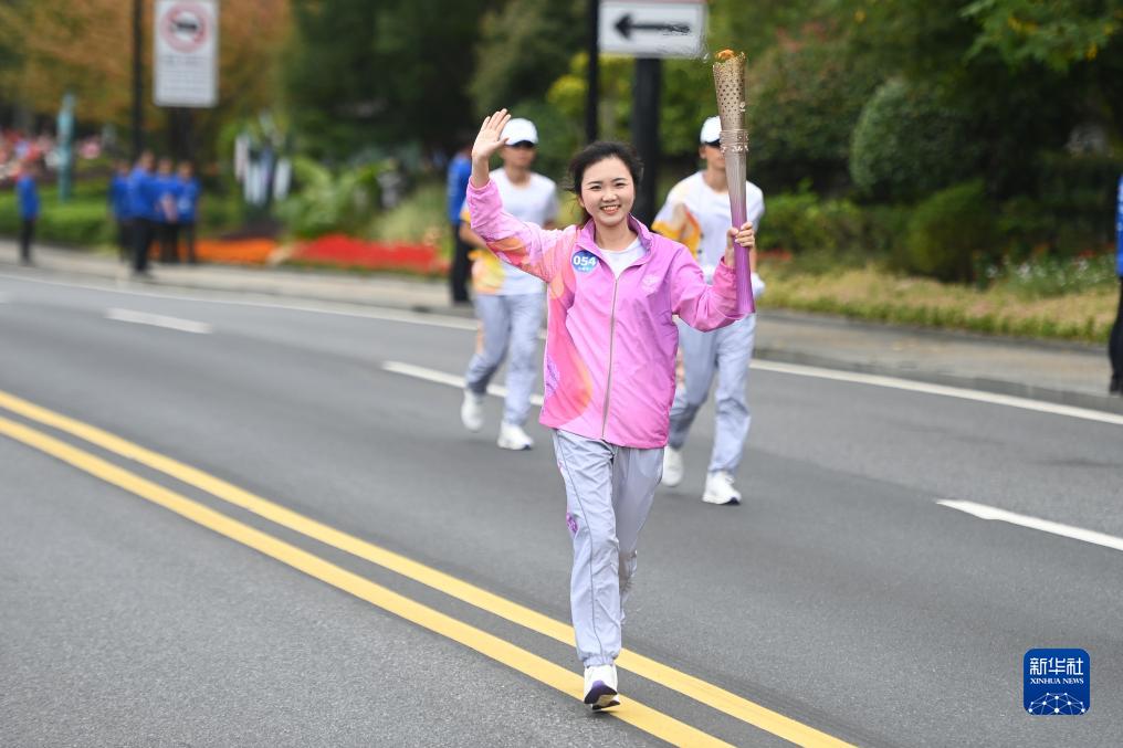 10月19日,火炬手殷夢(mèng)在火炬傳遞中。
