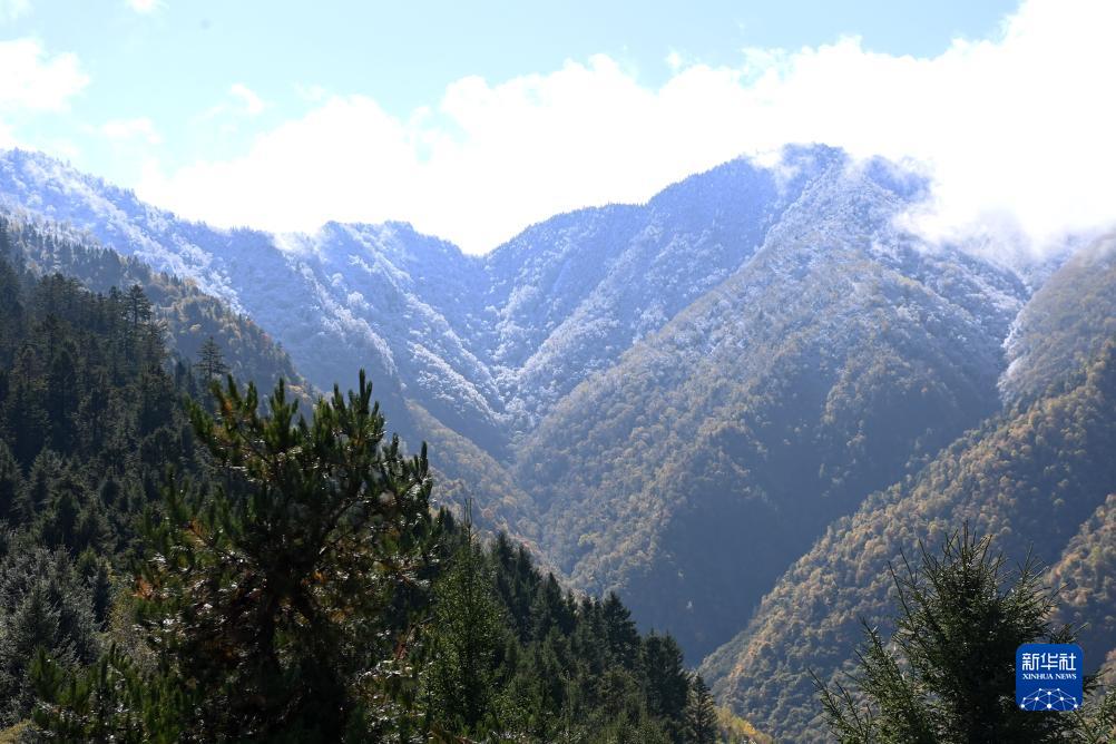金秋時(shí)節,位于甘肅省甘南藏族自治州舟曲縣境內的拉尕山秋意漸濃,一場(chǎng)秋雪降臨后,拉尕山云纏霧繞,斑斕如畫(huà)。