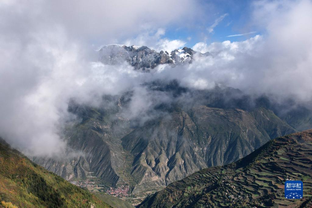 金秋時(shí)節,位于甘肅省甘南藏族自治州舟曲縣境內的拉尕山秋意漸濃,一場(chǎng)秋雪降臨后,拉尕山云纏霧繞,斑斕如畫(huà)。