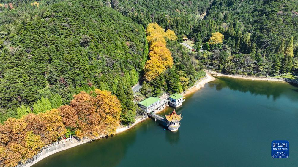 10月21日拍攝的廬山蘆林湖秋景(無(wú)人機照片)。