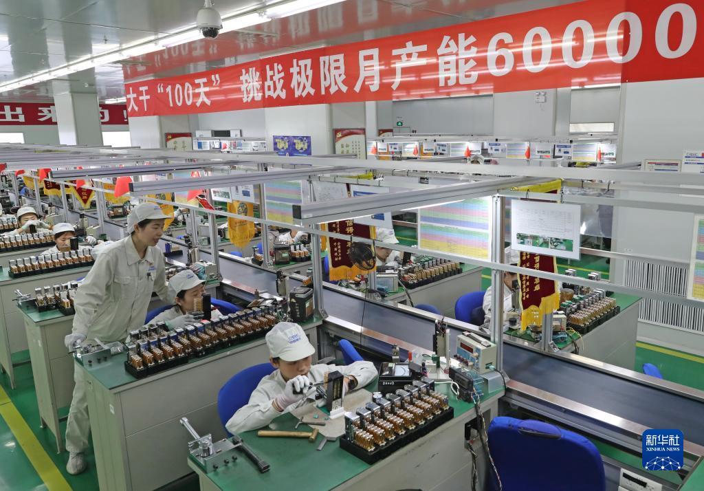 柯曉賓(站立者)在沈陽(yáng)鐵路信號有限責任公司電器車(chē)間指導班組成員生產(chǎn)繼電器(10月17日攝)。