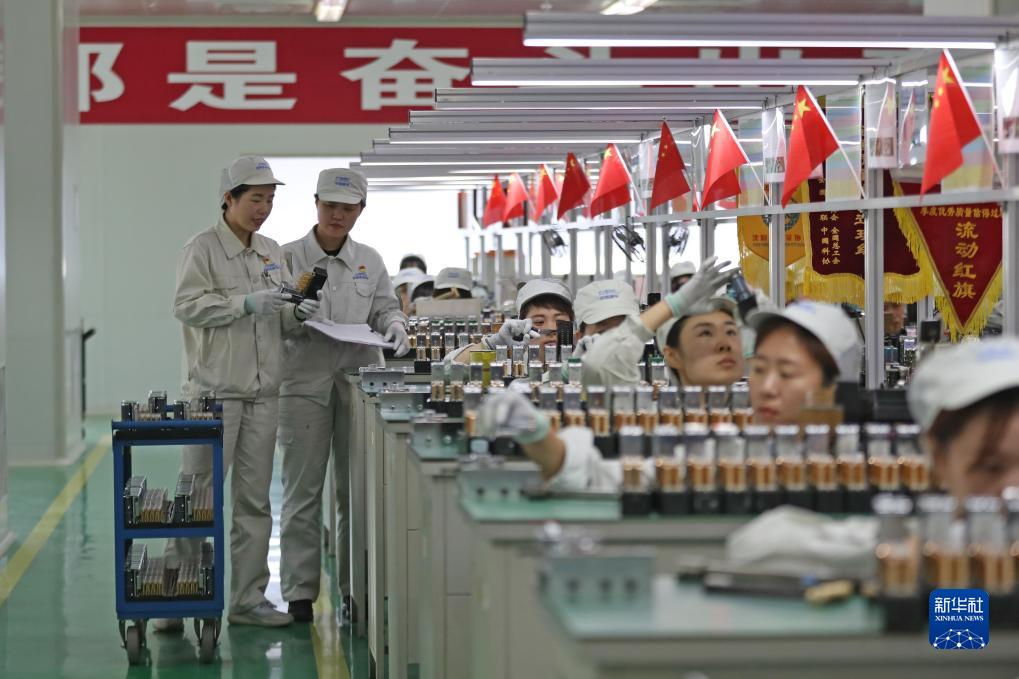 柯曉賓(左一)在沈陽(yáng)鐵路信號有限責任公司電器車(chē)間分發(fā)繼電器(10月17日攝)。