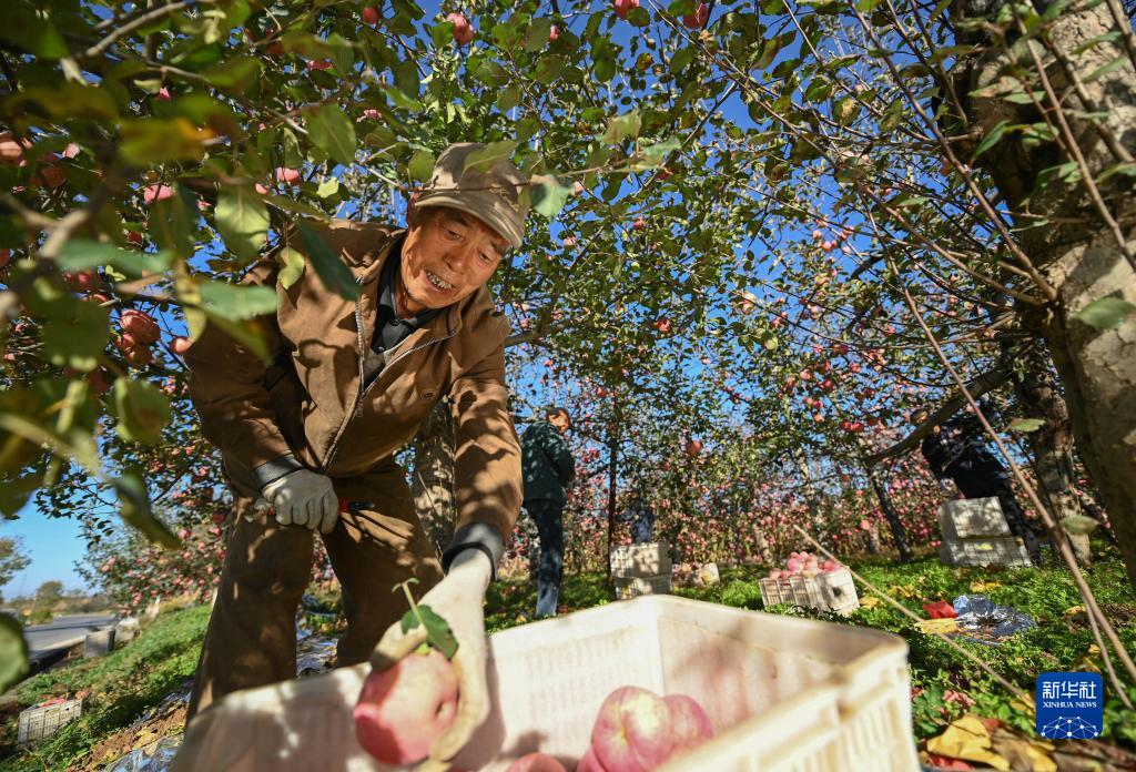 10月20日,果農在延安市洛川縣槐柏鎮一處果園采收蘋(píng)果。