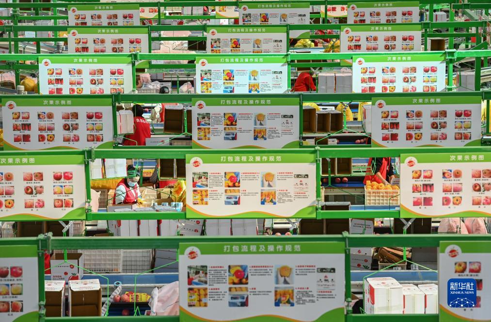 10月20日,工作人員在延安市洛川縣一家果業(yè)企業(yè)打包蘋(píng)果。