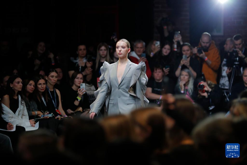 10月21日,模特在俄羅斯首都莫斯科舉行的伏爾加時(shí)裝周上展示時(shí)裝。