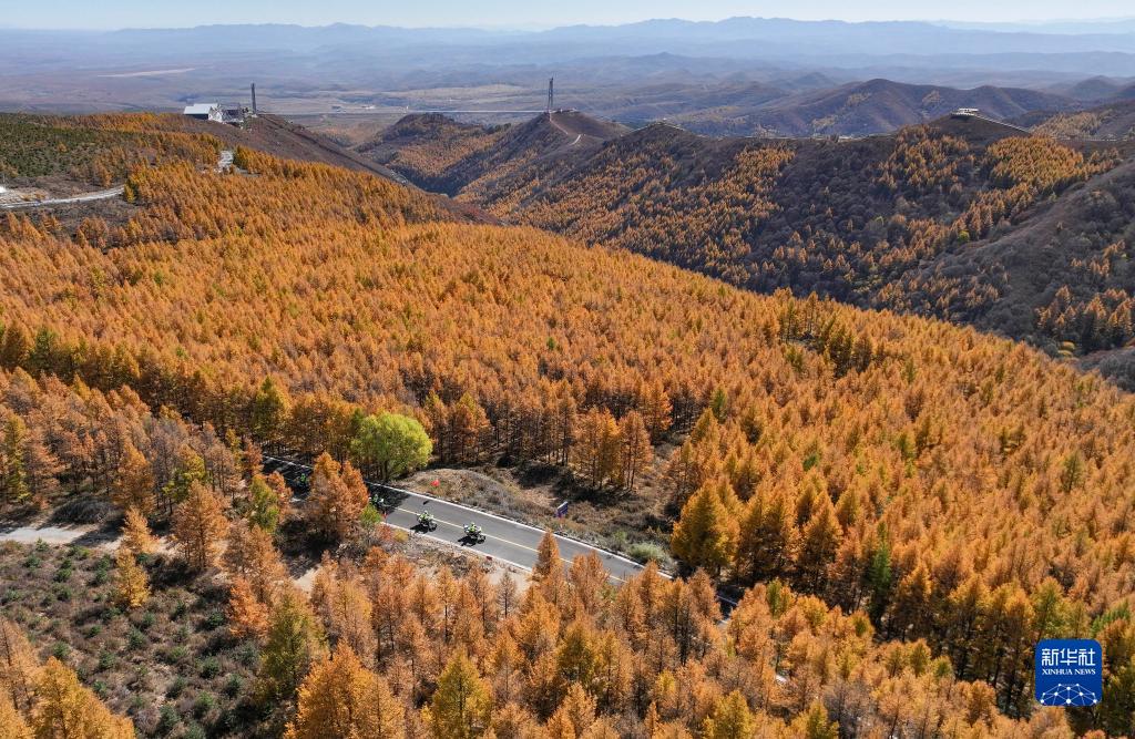 這是10月14日拍攝的河北省尚義縣大青山秋色(無(wú)人機照片)。