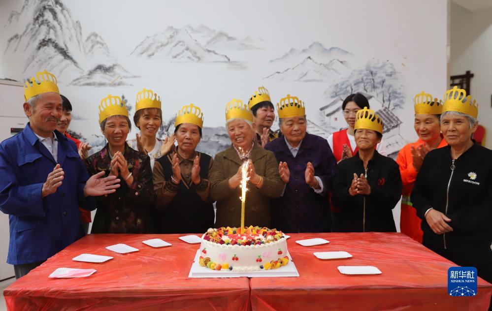 10月22日,浙江省臺州市路橋區路北街道的黨員志愿者在銘泰社區為老人們過(guò)集體生日。