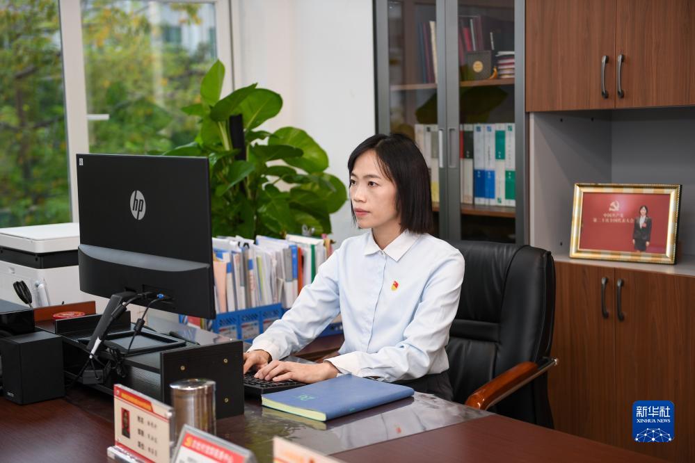 陸秀興在古灶村村委會(huì )的辦公室辦公(10月17日攝)。