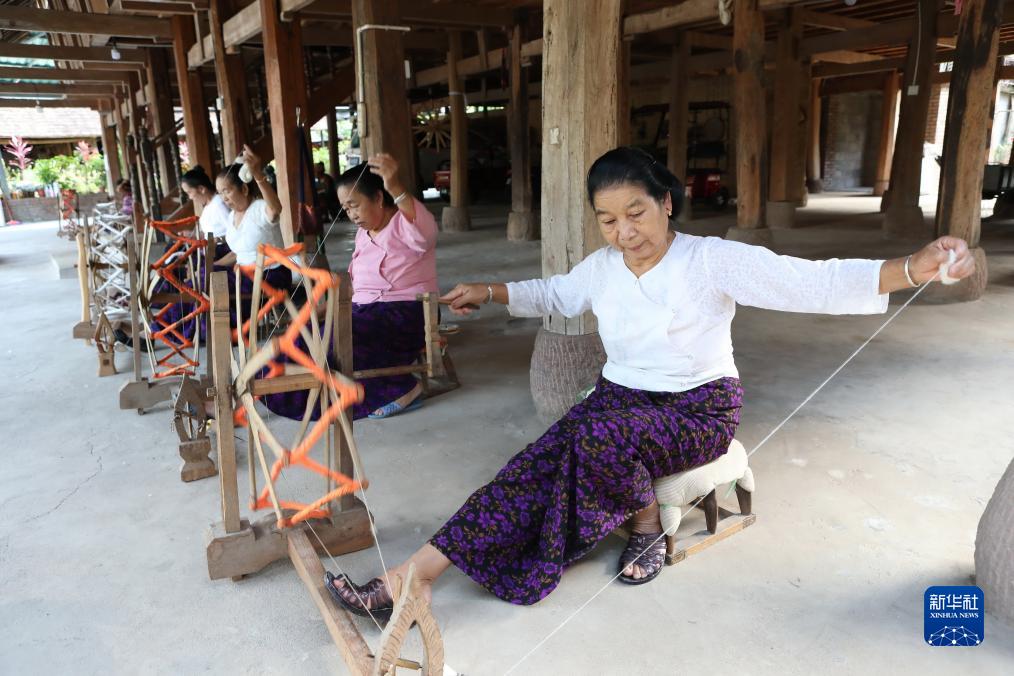 10月18日,在云南省景洪市勐罕鎮曼聽(tīng)村,村民向游客展示紡線(xiàn)技藝。